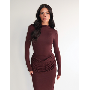 Eliza Drape Long Skirt - Brown