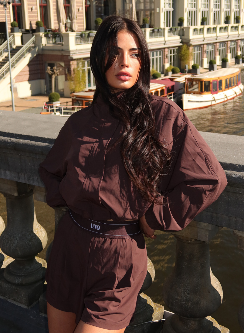 De Gigi Short – Cacao van Unique the Label is een sportieve en stijlvolle short met een comfortabele pasvorm. De short is uitgevoerd in een diepe cacao kleur die zorgt voor een warme en luxe uitstraling. De elastische tailleband biedt een fijne fit en extra draagcomfort. De lichte, soepele en stretchy stof maakt deze short geschikt voor zowel casual als actieve momenten. Combineer met de bijpassende Gigi Top voor een complete en moderne set. Lois is 1.72m en draagt maat XS.