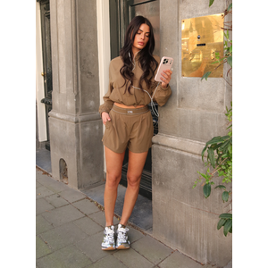 De Gigi Short – Olive van Unique the Label is een sportieve en veelzijdige short met een moderne uitstraling. De short heeft een relaxte pasvorm en is uitgevoerd in een stijlvolle olijfgroene kleur die eenvoudig te combineren is. De elastische tailleband zorgt voor een comfortabele fit en extra draaggemak. De lichte, soepele en stretchy stof maakt deze short geschikt voor zowel casual als actieve momenten. Combineer met de bijpassende Gigi Top voor een complete en trendy set. Lois is 1.72m en draagt maat XS.