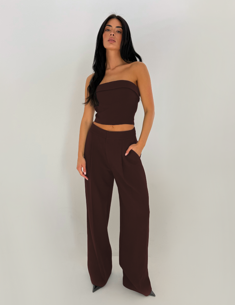 De Jodie Pantalon – Cacao van Unique the Label is een elegante essential die moeiteloos iedere look naar een hoger niveau tilt. Deze stijlvolle pantalon heeft een rechte, luxe vallende pasvorm met subtiele plooien aan de voorzijde, wat zorgt voor een verfijnde en moderne uitstraling. De bruine maakt dit item tijdloos en perfect voor zowel dagelijkse outfits als meer geklede gelegenheden.