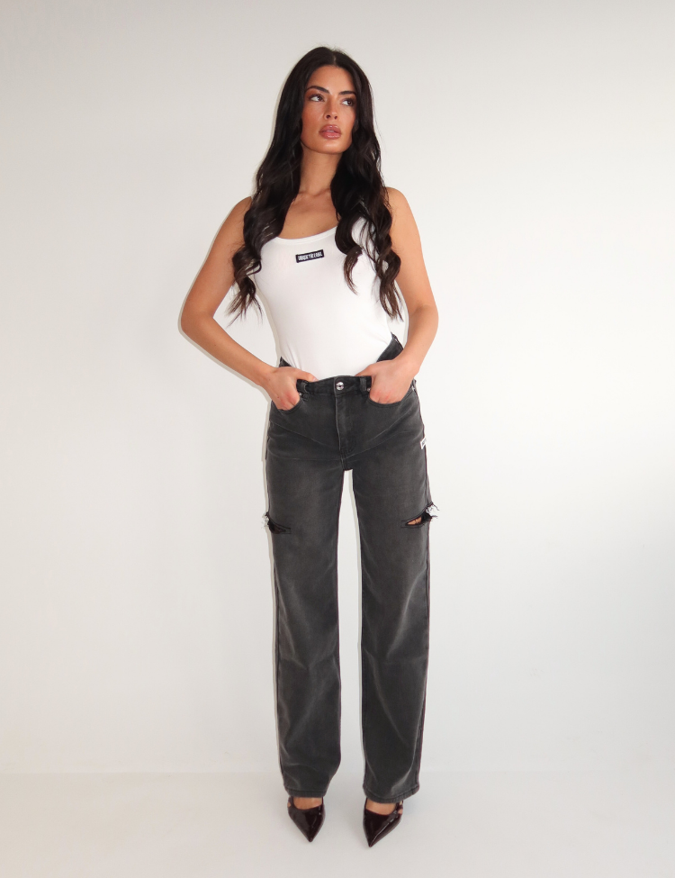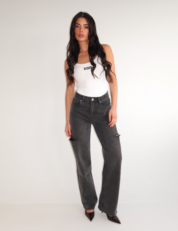 June Wide Leg Jeans - Mid Grey