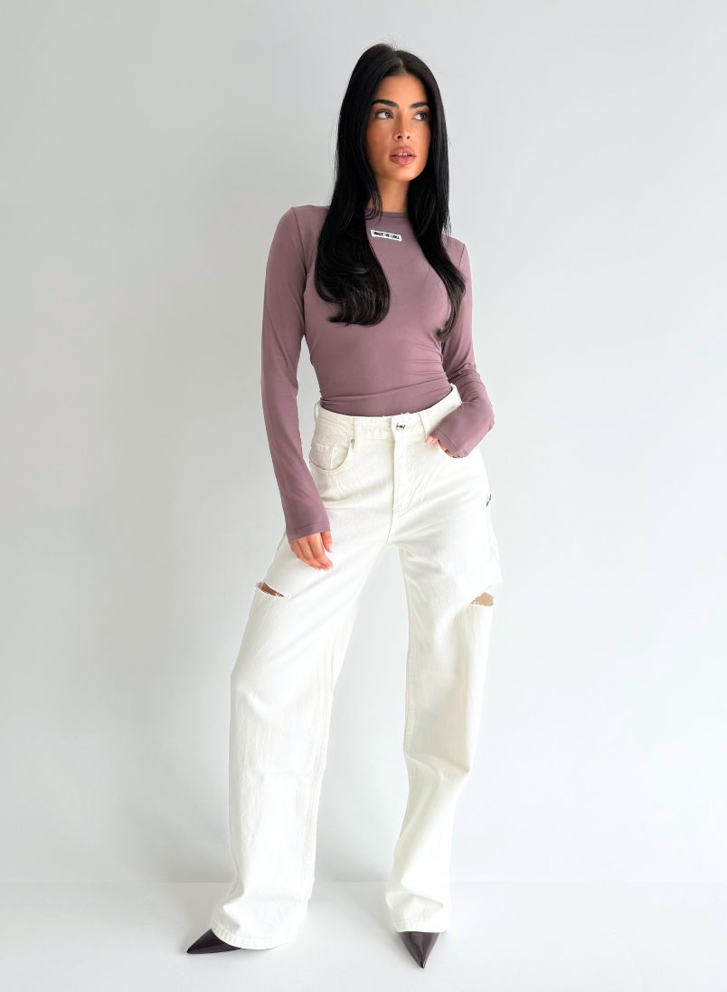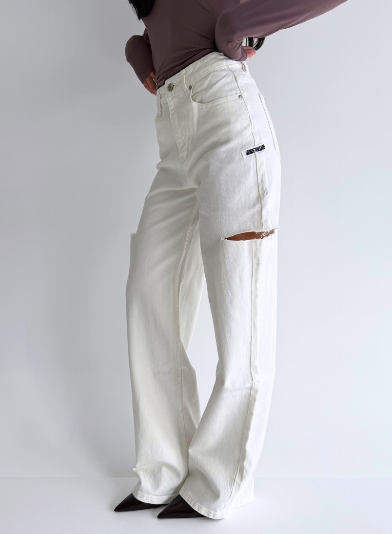 De June Wide Leg Jeans is een must-have voor jouw garderobe. De broek heeft cut out details, stretch en Unique branding. Het model draagt maat 36.