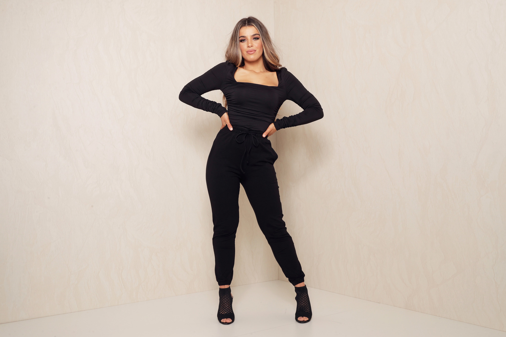 Longsleeve ruched bodysuit in zwart