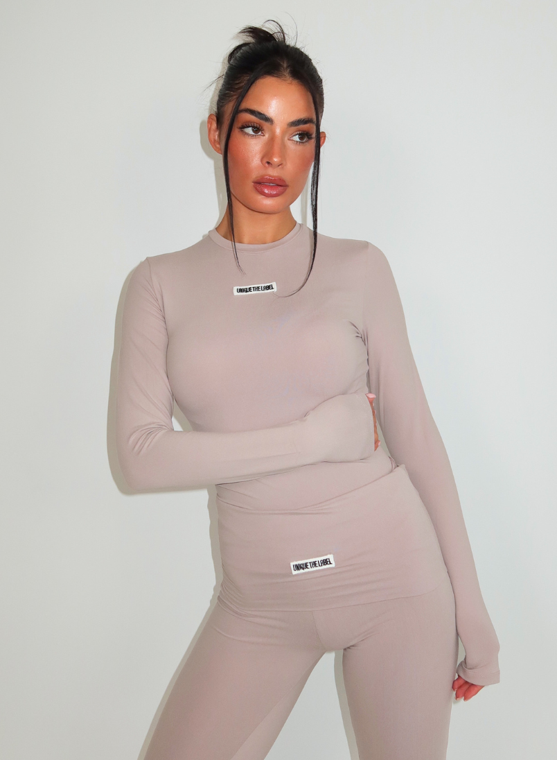 De Nena Longsleeve Top van Unique the Label in de nieuwe kleur Mocha heeft een comfortable en flattering fit. Wear it with the matching NENA pants.
