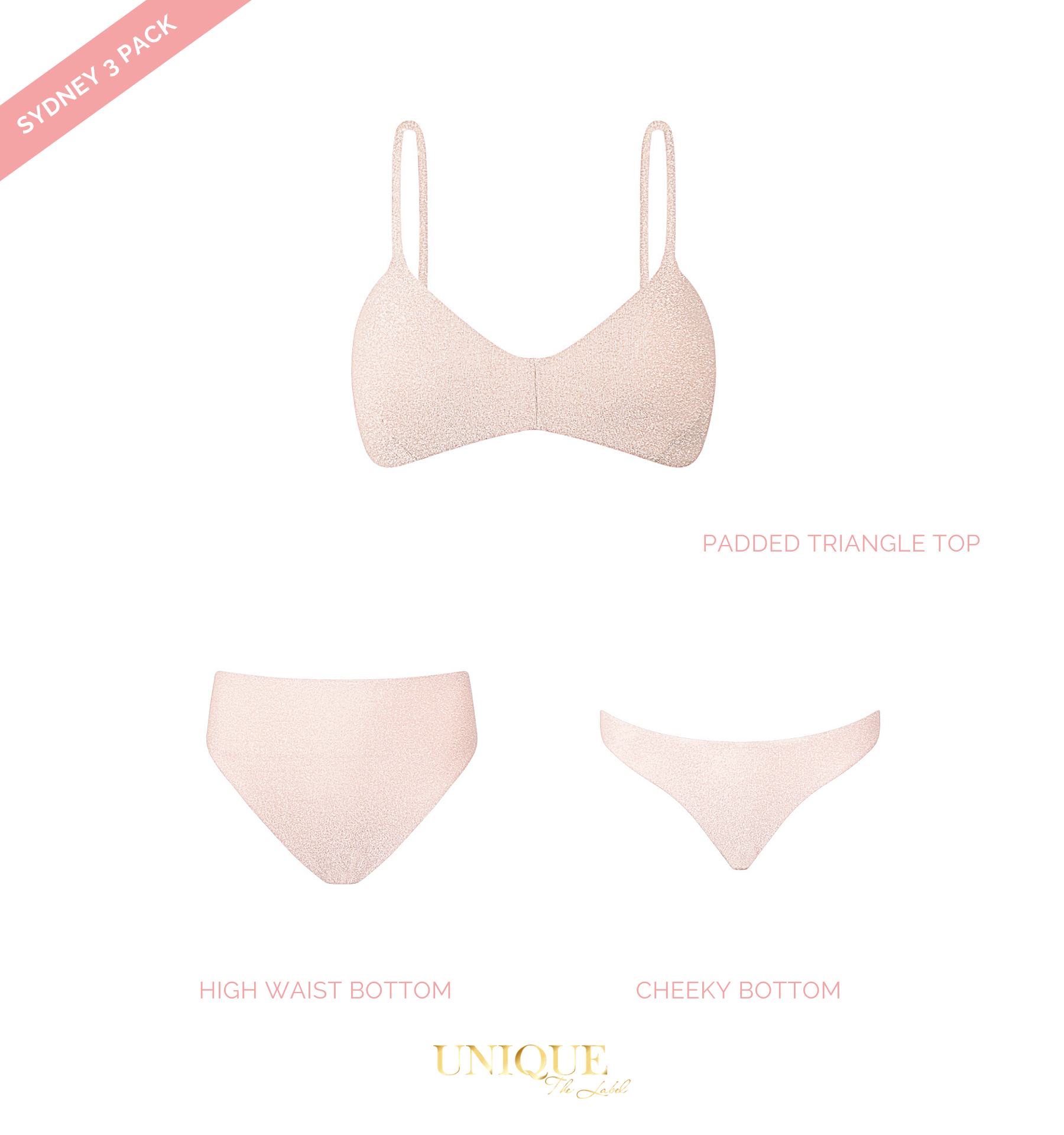 SO UNIQUE! De perfecte bikini: Sydney 3 Pack. De 3 Pack bevat 1 bikini top en 2 verschillende bikini bottoms voor jouw perfecte beach look.