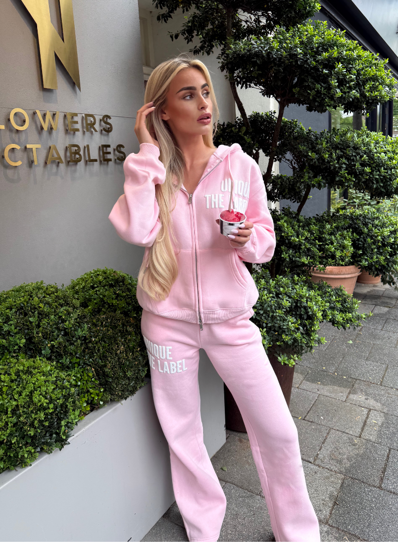 Upgrade je loungewear met de Joleen Zip Hoodie van Unique the Label. Deze hoodie heeft een oversized pasvorm met een zachte fleece binnenkant, wat zorgt voor ultiem comfort én een modieuze look. Het vest is voorzien van een stevige rits, een ruime capuchon met trekkoord, opgestikte zakken en het iconische "UNIQUE THE LABEL" logo in wit op de borst.