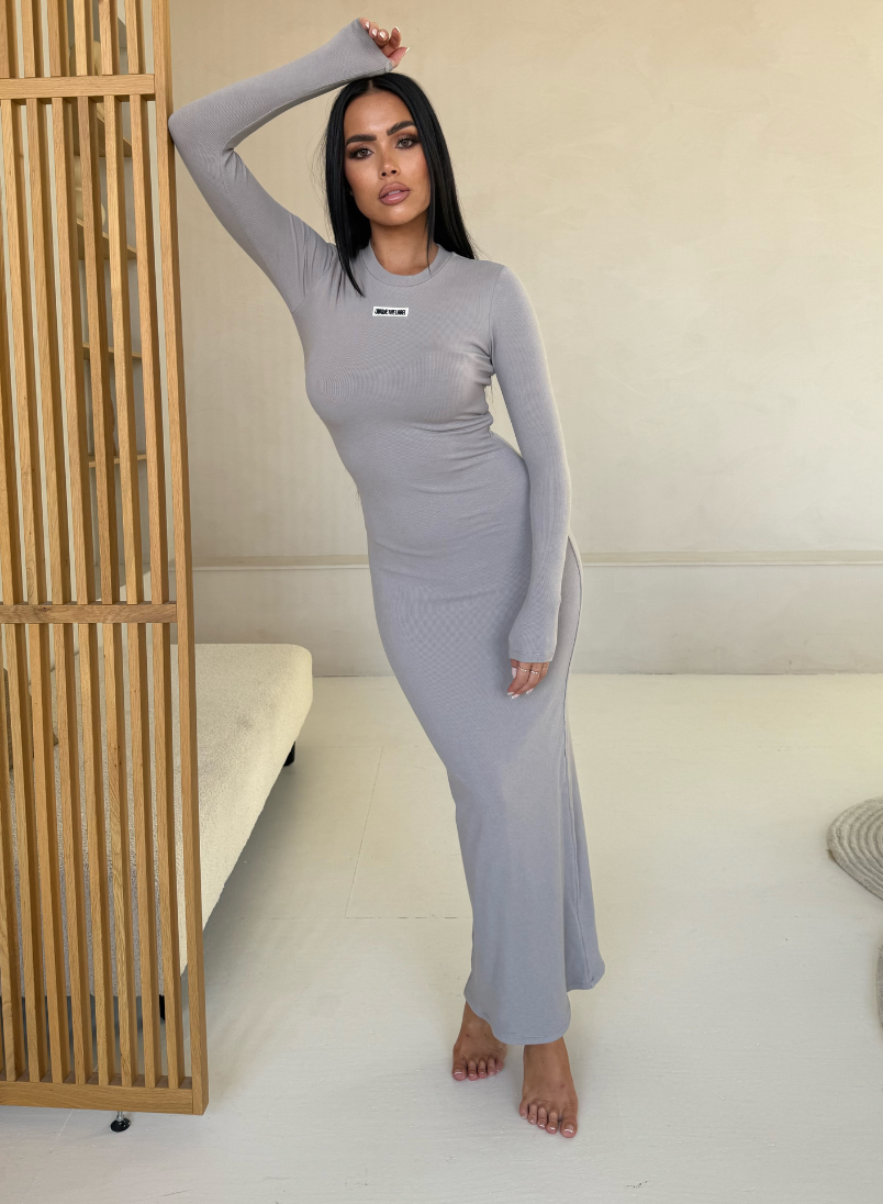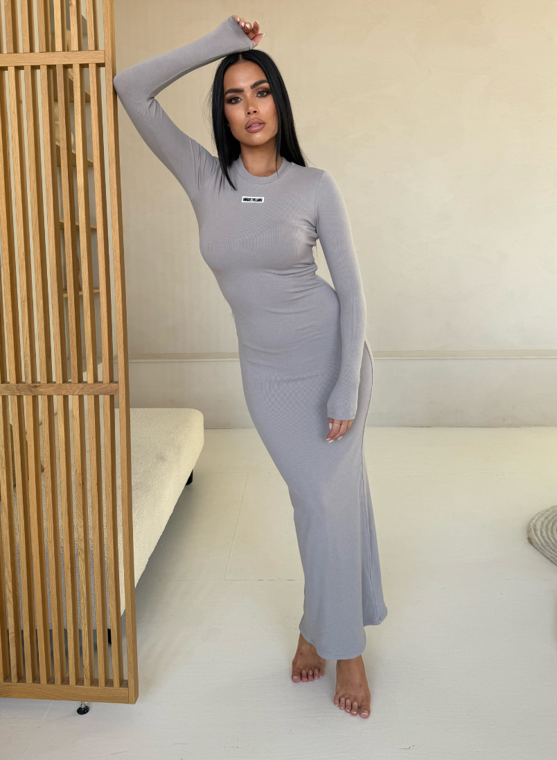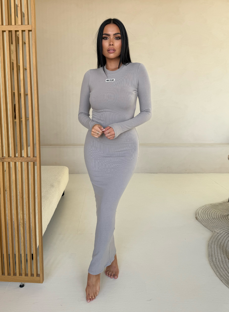 Deze ribgebreide maxi-jurk is een tijdloos en flatterend item dat niet mag ontbreken in je garderobe. De aansluitende pasvorm, lange mouwen en ronde hals zorgen voor een elegante en comfortabele look. De zachte stretchstof beweegt mee met je lichaam en biedt een mooie silhouet.