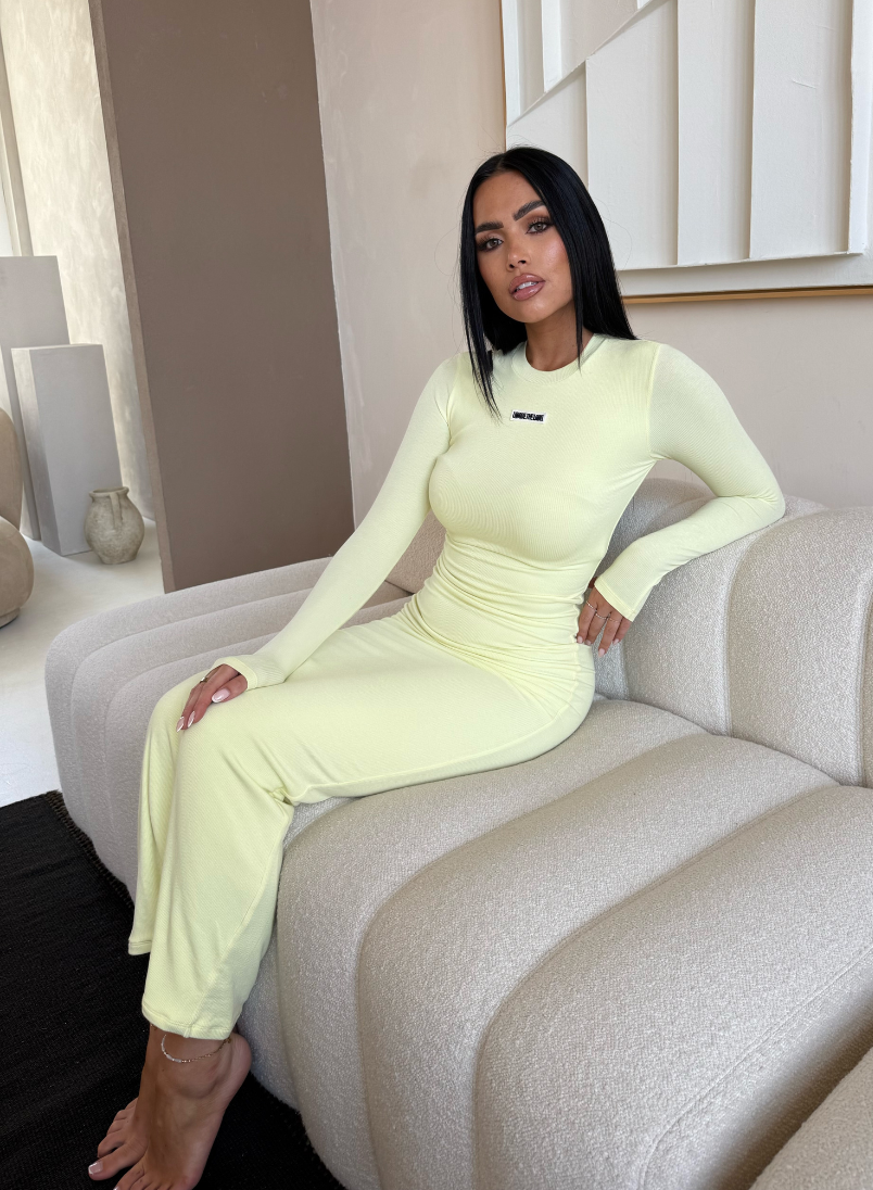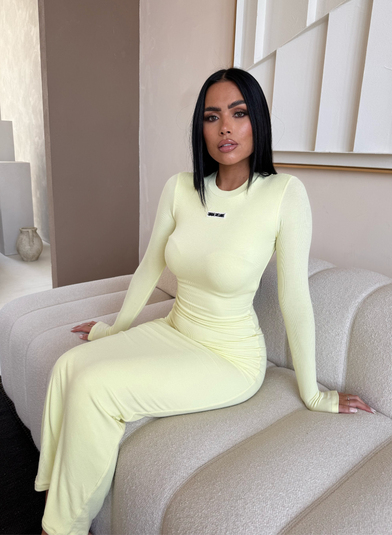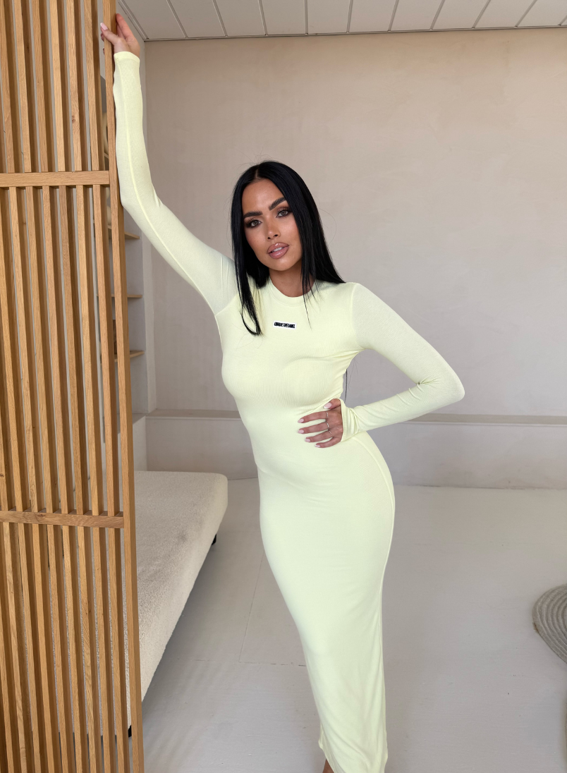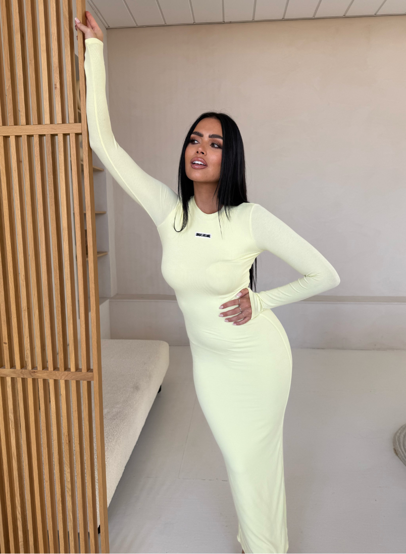 Deze ribgebreide maxi-jurk is een tijdloos en flatterend item dat niet mag ontbreken in je garderobe. De aansluitende pasvorm, lange mouwen en ronde hals zorgen voor een elegante en comfortabele look. De zachte stretchstof beweegt mee met je lichaam en biedt een mooie silhouet.