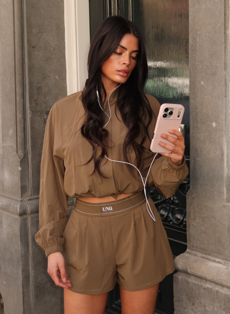De Gigi Jacket heeft een ontspannen, iets oversized pasvorm met subtiel volume in de mouwen voor een trendy silhouet. De elastische tailleband met logo detail zorgt voor een flatterende vorm en geeft de jas een sportieve touch. Perfect te combineren met de bijpassende Gigi Pants voor een complete, on-trend set die geschikt is voor zowel casual als geklede momenten.