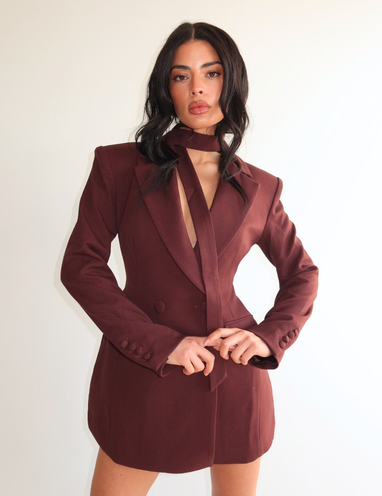 De Katie Dress – Brown is een krachtige en elegante blazer dress met een modern, vrouwelijk silhouet. De getailleerde pasvorm accentueert het lichaam op een verfijnde manier, terwijl de scherpe revers, dubbele knoopsluiting en subtiele schouderlijn zorgen voor een sterke, stijlvolle uitstraling. De warme bruine kleur geeft de jurk een zachte, luxe touch en maakt het item perfect voor een moderne pre-spring garderobe.