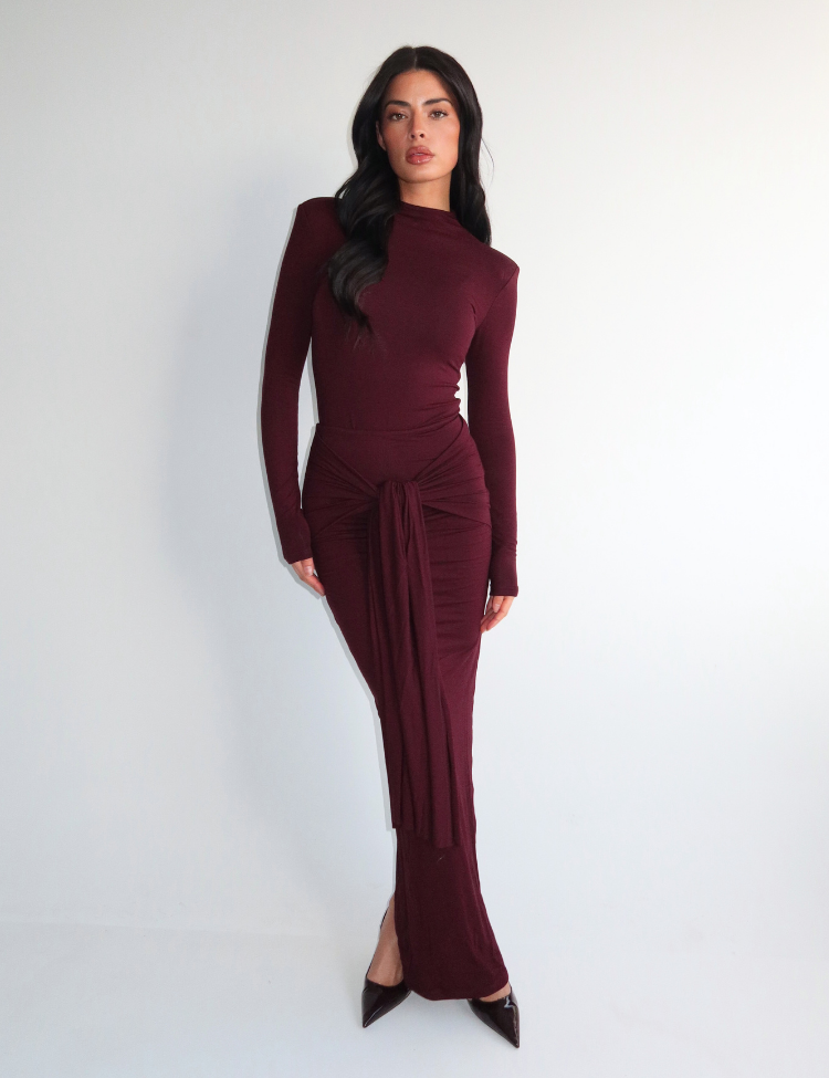 Eliza Bow Long Skirt - Burgundy was added to your cart